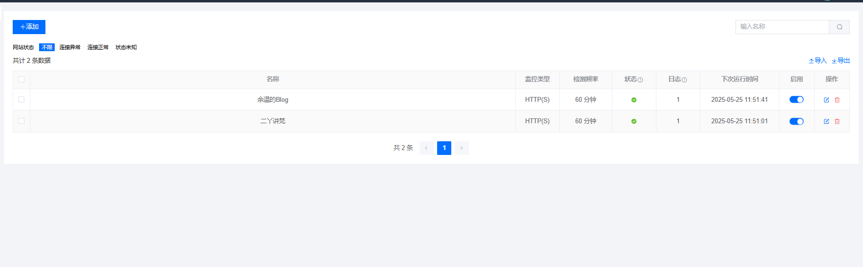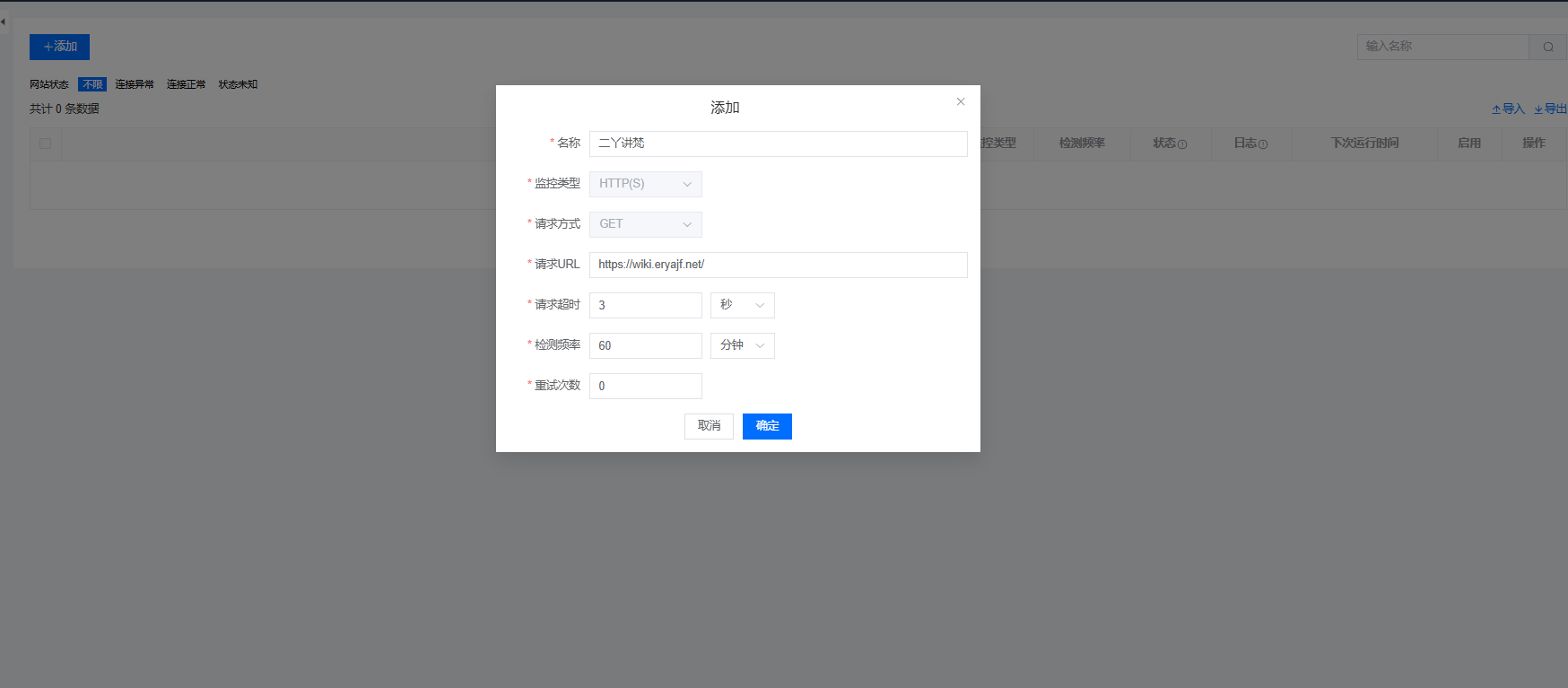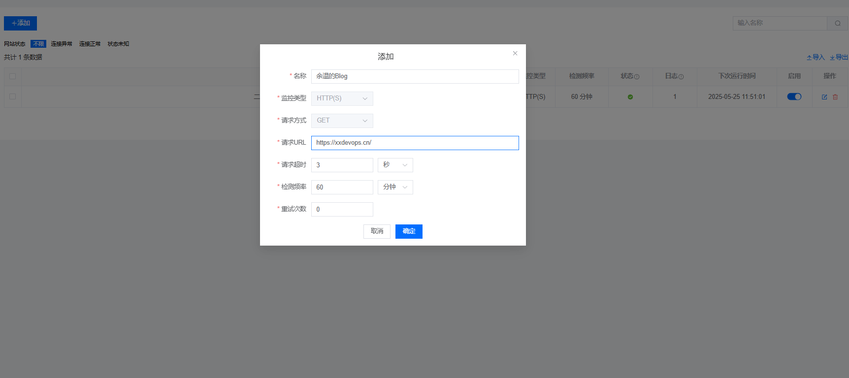 - 添加,网站名称,请求URL地址