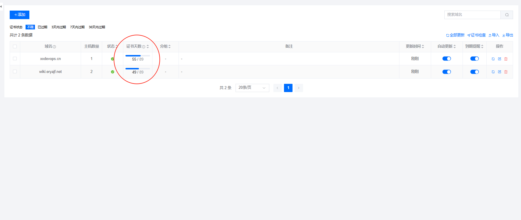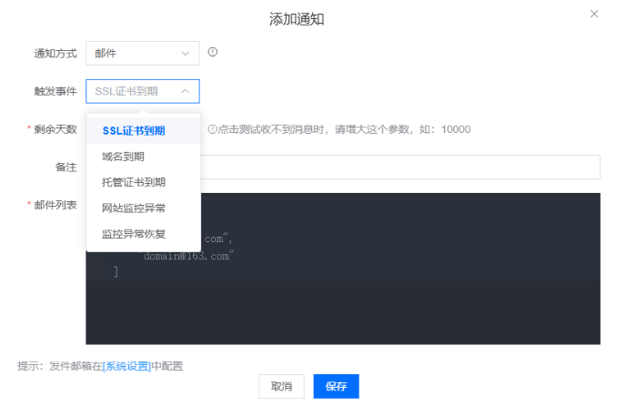 - 证书监控,添加域名地址