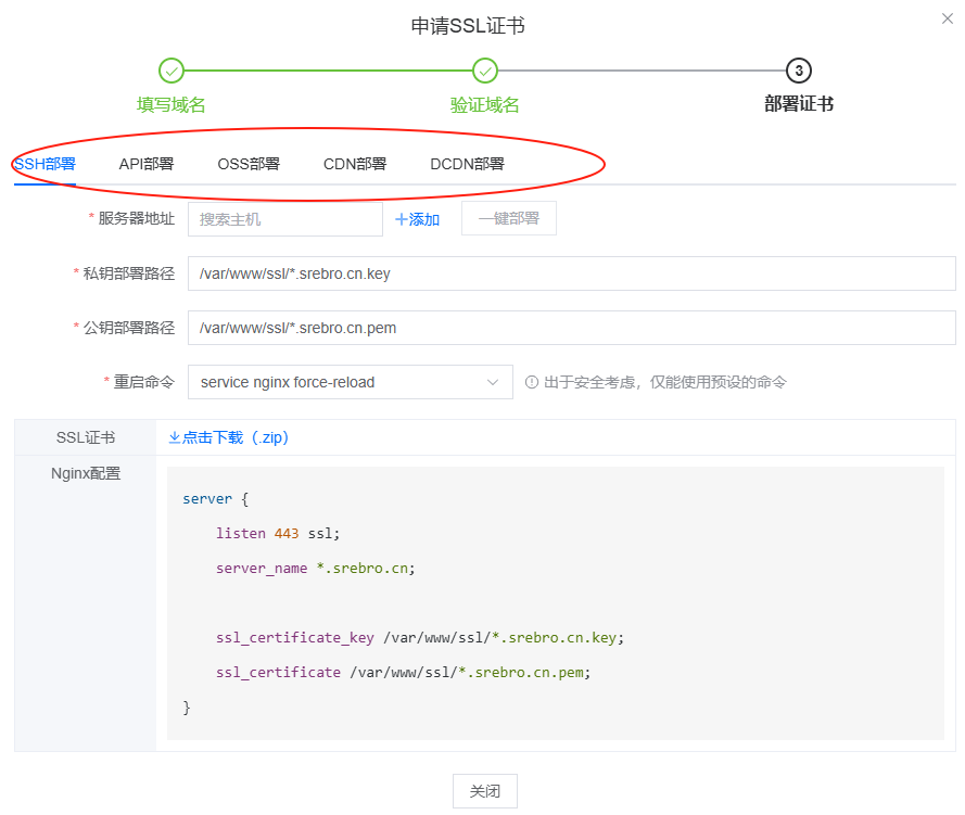 - 支持多种方式一键部署SSL证书