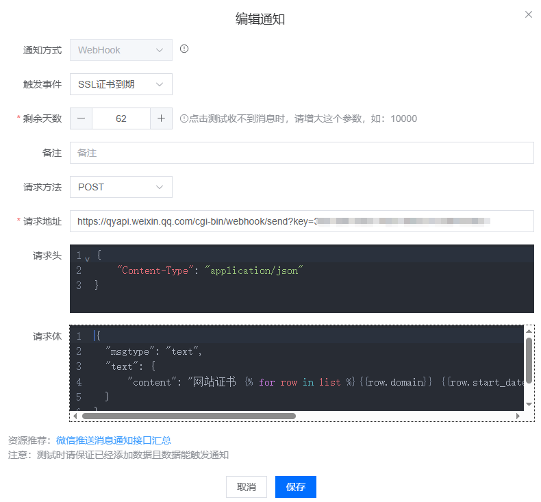 - 添加一个 企微微信机器人🤖的WebHook 告警测试下功能